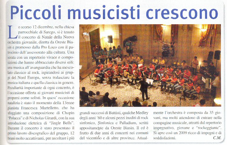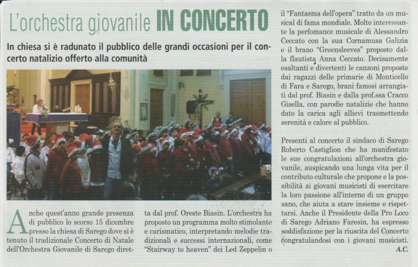 Dal mensile "Basso Vicentino"di Gennaio Concerto di Natale